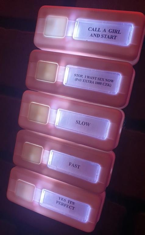 Přinášíme Vám jako jediný privát nový zážitek: Gloryhole ! Kdo tento název nezná, jedná se o malý otvor ve stěně pro Váš penis, který spojuje dvě místnosti. V jedné místnosti jste pouze vy a v druhé anonymní dívka, jedna z našeho týmu. Možné jsou dvě varianty orálního sexu. (Ano, je tam vždy a pouze dívka!) -S kondomem nebo -bez kondomu s výstřikem do pusy Čas je omezen max. na 15 minut, nebo do prvního vyvrcholení. Jako dokonalá vychytávka jsou k dispozici u otvoru tlačítka, kterými dáváte dívce na druhé straně signály, zdali chcete pomalejší tempo, rychlejší tempo, nebo že dokonce chcete Gloryhole opustit, prodloužit setkání o dalších 30 min. a přejít s touto dívkou ke klasickému sexíku (za příplatek 1000 ķč)