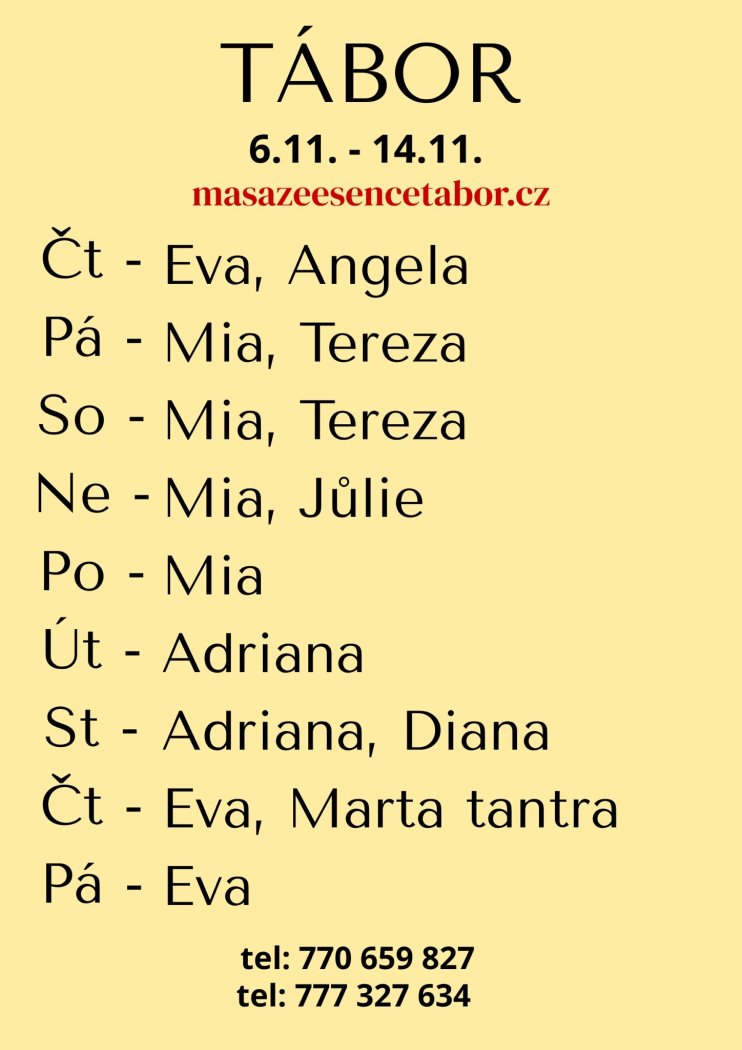 Erotická masáž zaměřena na MASÁŽ LINGAMU. MÉ DOTYKY PŘINÁŠÍ HLUBOKOU RELAXACI,VZRUŠENÍ A PŘÍVAL ENERGIE. Skrze erotickou masáž zažijeme chvíle plné psychického- fyzického vzrušení. Jemně se budu dotýkat míst, tam kde se ti to líbí, použiji celé své NAHÉ tělo, zadeček, stehna, hýždě, prsa. S láskou tě objímám. Cítíš své tělo jak se chvěje. Jsem Tvá bohyně,jsem Tvá kněžka. Já jsem Tvá žena, která Tě vtahuje do jiného světa.Dotýkám se celého těla i intimních partií. Budu se na tebe těšit. DOPORUČUJI DÉLKU MASÁŽE 90MIN Z DŮVODU HLUBŠÍCH PROŽITKŮ 120MINUT ZDRŽTE SE DOTAZŮ SEXUÁLNÍHO RÁZU. Více informací na tel.:770659827 nebo 777327634