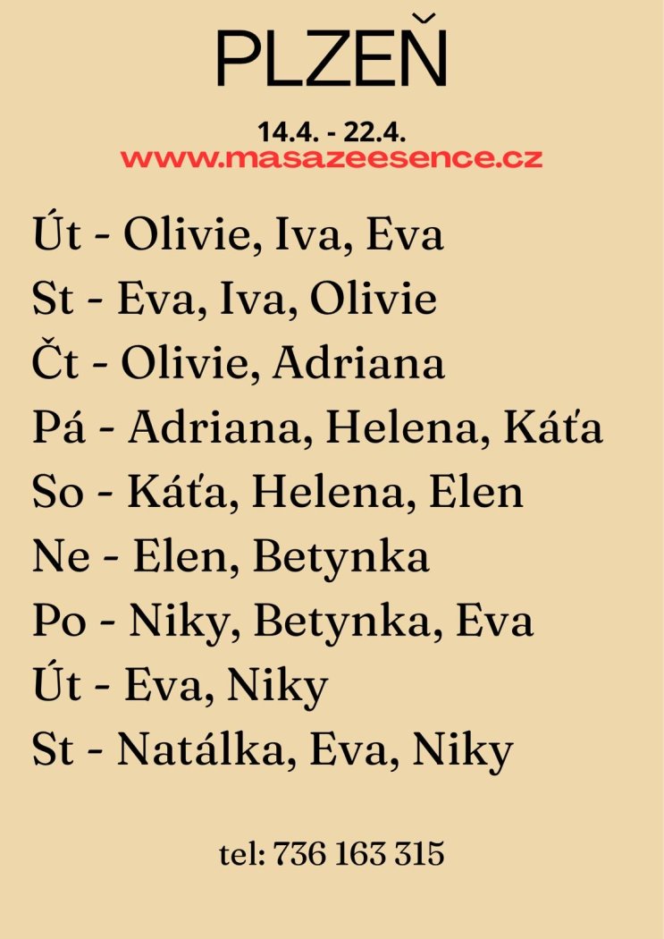 Vítám vás v salonu MASÁŽE ESENCE. Jsem SMYSLNÁ dívka co vás ráda potěší... JEDNÁ SE O EROTICKOU MASÁŽ S RUČNÍM VYVRCHOLENÍM. 😍 Je to velice hravá a intimní masáž do které zapojím nejen své ruce, ale i stehna, zadeček i prsa. Extra masáže:MASÁŽ LINGAMU, FOOTJOB, ZPĚTNÁ MASÁŽ A DALŠÍ.😍Pro více informací volej: 736 163 315. MASÍRUJI CELÁ NAHÁ. Postarám se o to, abys změnil každodenní stereotyp a načerpal jsi novou sílu. DOPORUČUJI: délku masáže 60min. a z důvodu hlubšího prožitku 90min. Tel.:736163315